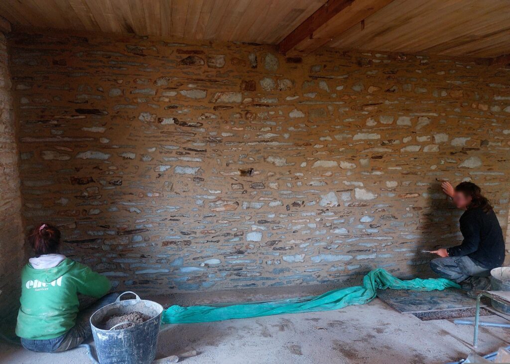 Bon les chambres sont finies mais pas les enduits ! Si vous avez envie d’en faire aussi, il y aura une autre session d’enduits de corps dans la salle du premier étage (ceci est un appel à deter’). Pour tâter la terre, on vous invite aussi au chantier d’isolation du plancher du 1er « le grand test des quenouilles » ! Ça devrait se passer en juin.